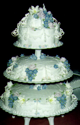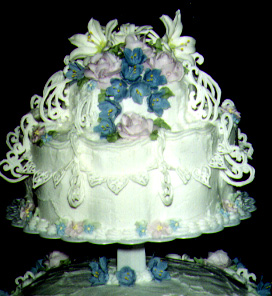 Susan's wedding cake, royal frosting lilies and bluebells with lacework